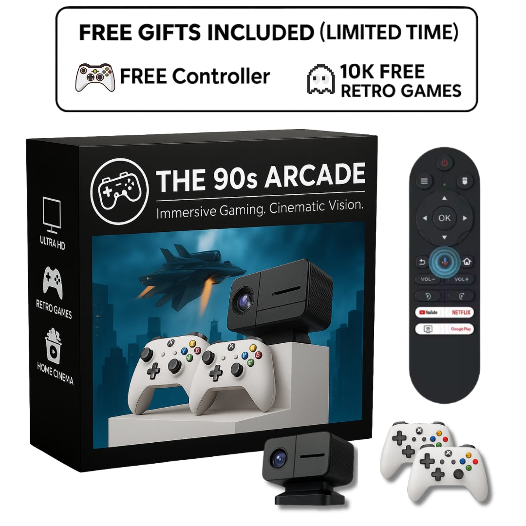 I never imagined how much fun it would be to play retro titles on a massive screen until I got this projector. Setting it up was super easy, and within minutes I was navigating Netflix and YouTube directly from the interface. The bonus controllers made multiplayer nights unforgettable — it feels like a full arcade experience right at home. This has completely changed how we enjoy our weekends.